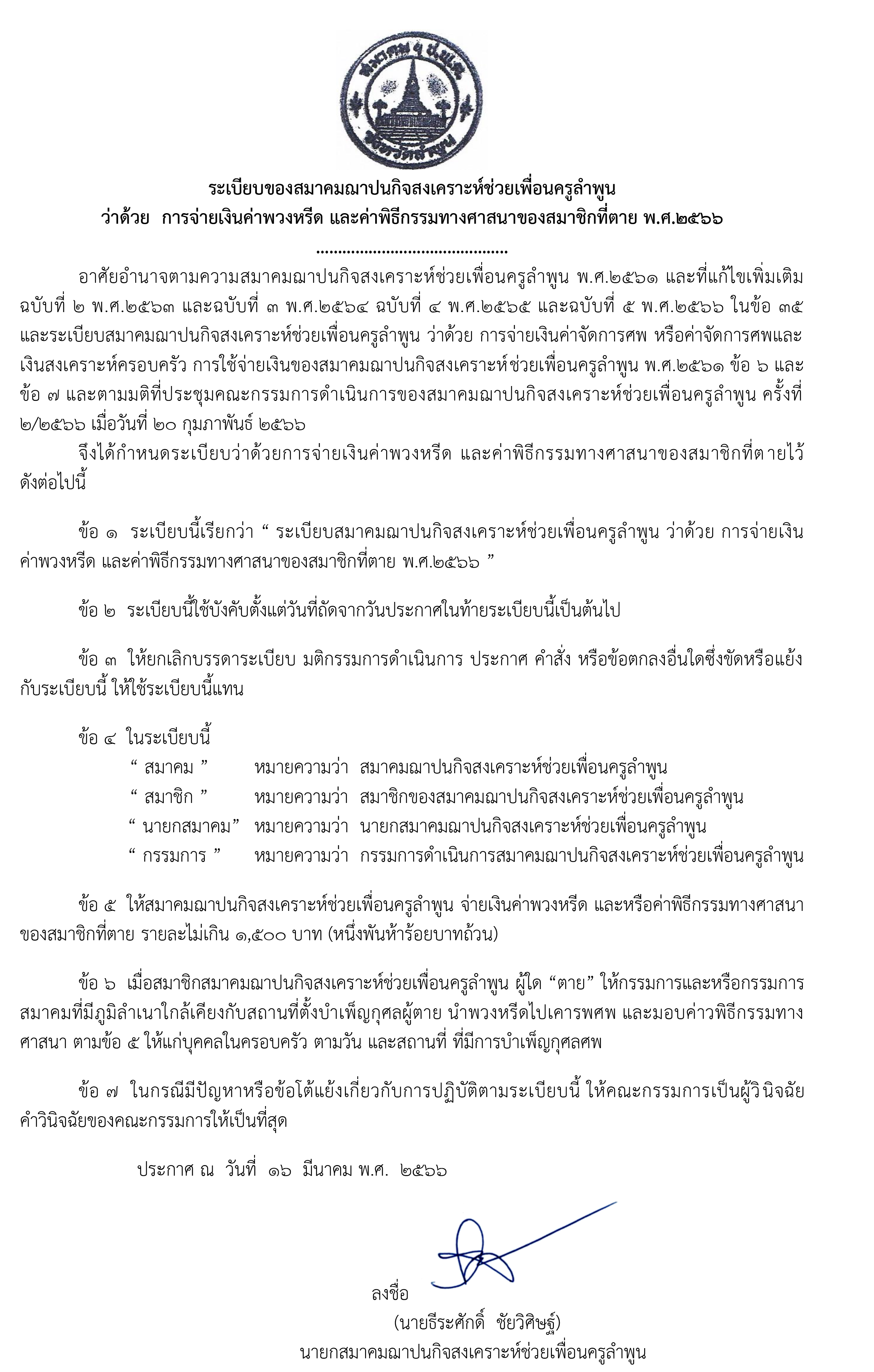 เนื้อหาถัดไป: ข้อบังคับสมาคมฌาปนกิจสงเคราะห์ช่วยเพื่อนครูลำพูน ปี 2568