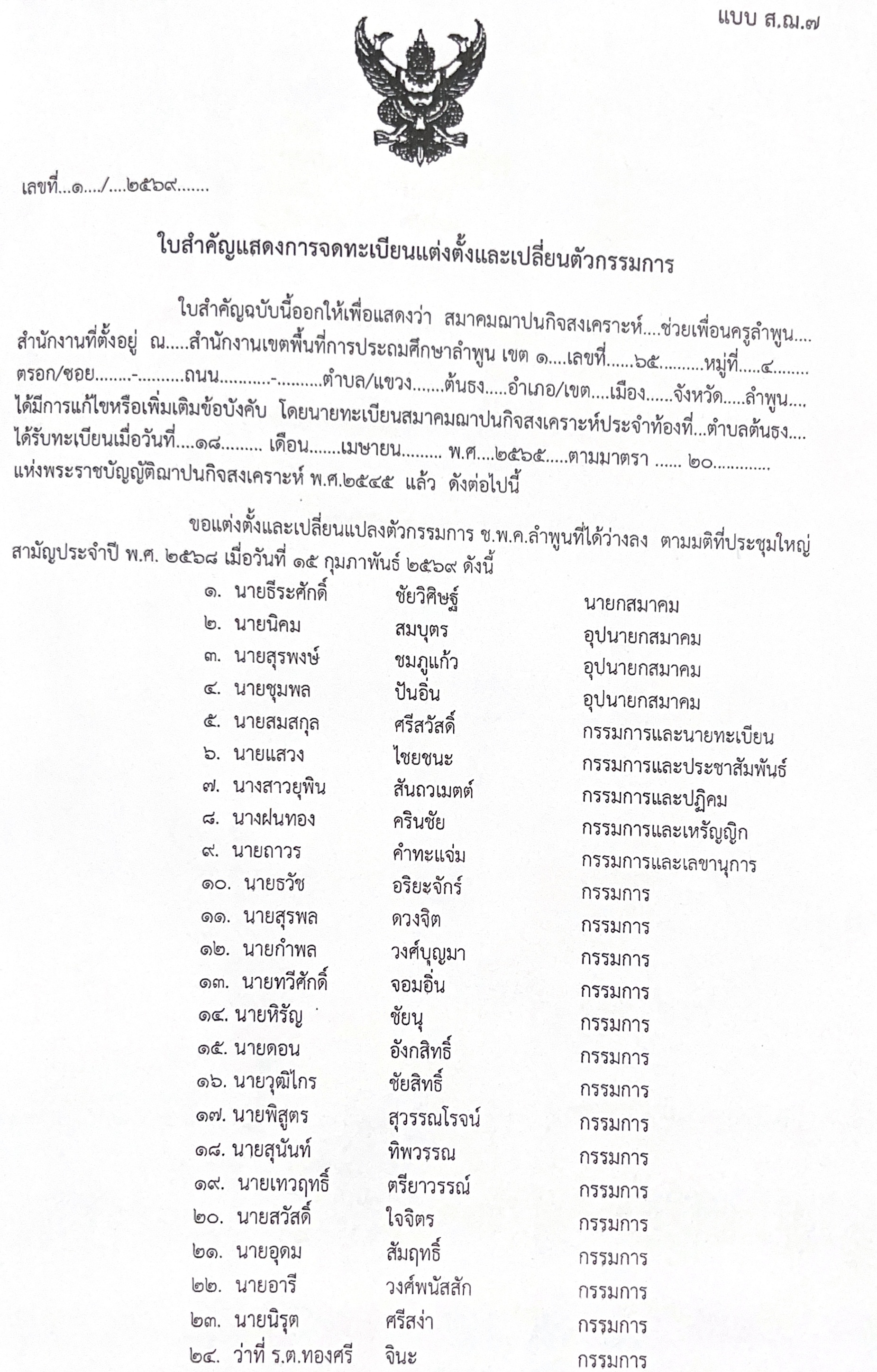 คณะกรรมการ ช.พ.ค.ลำพูน ชุดที่ 36