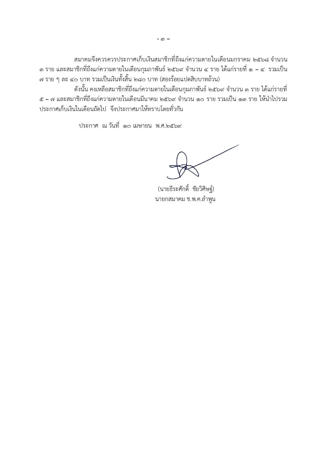 ประกาศเก็บเงิน เดือน มีนาคม พ.ศ.2568