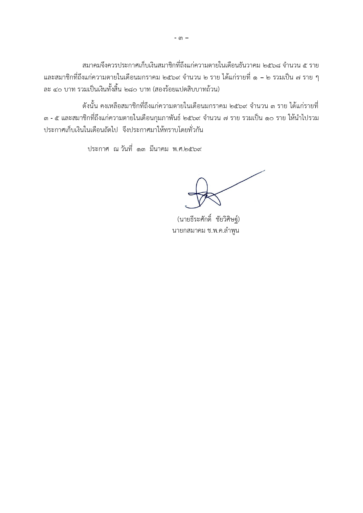 ประกาศเก็บเงิน เดือน มีนาคม พ.ศ.2568